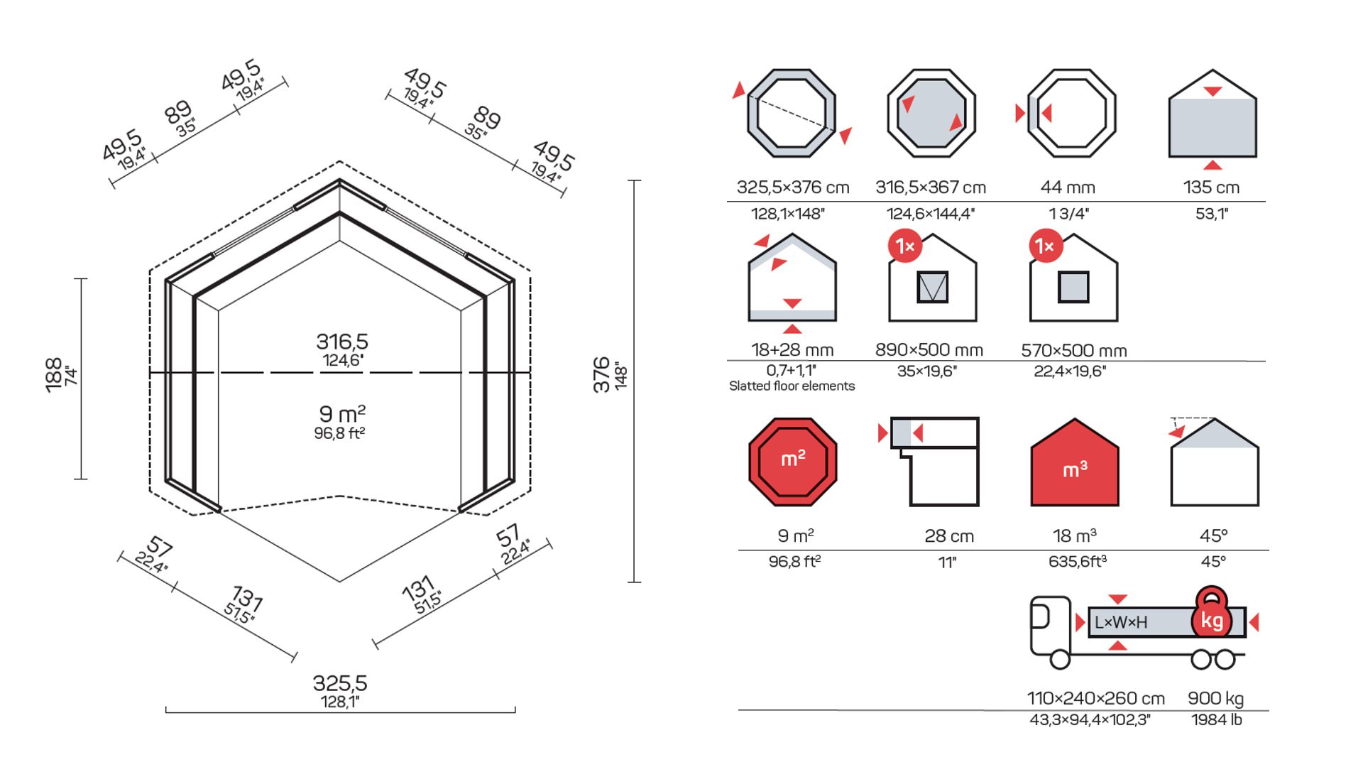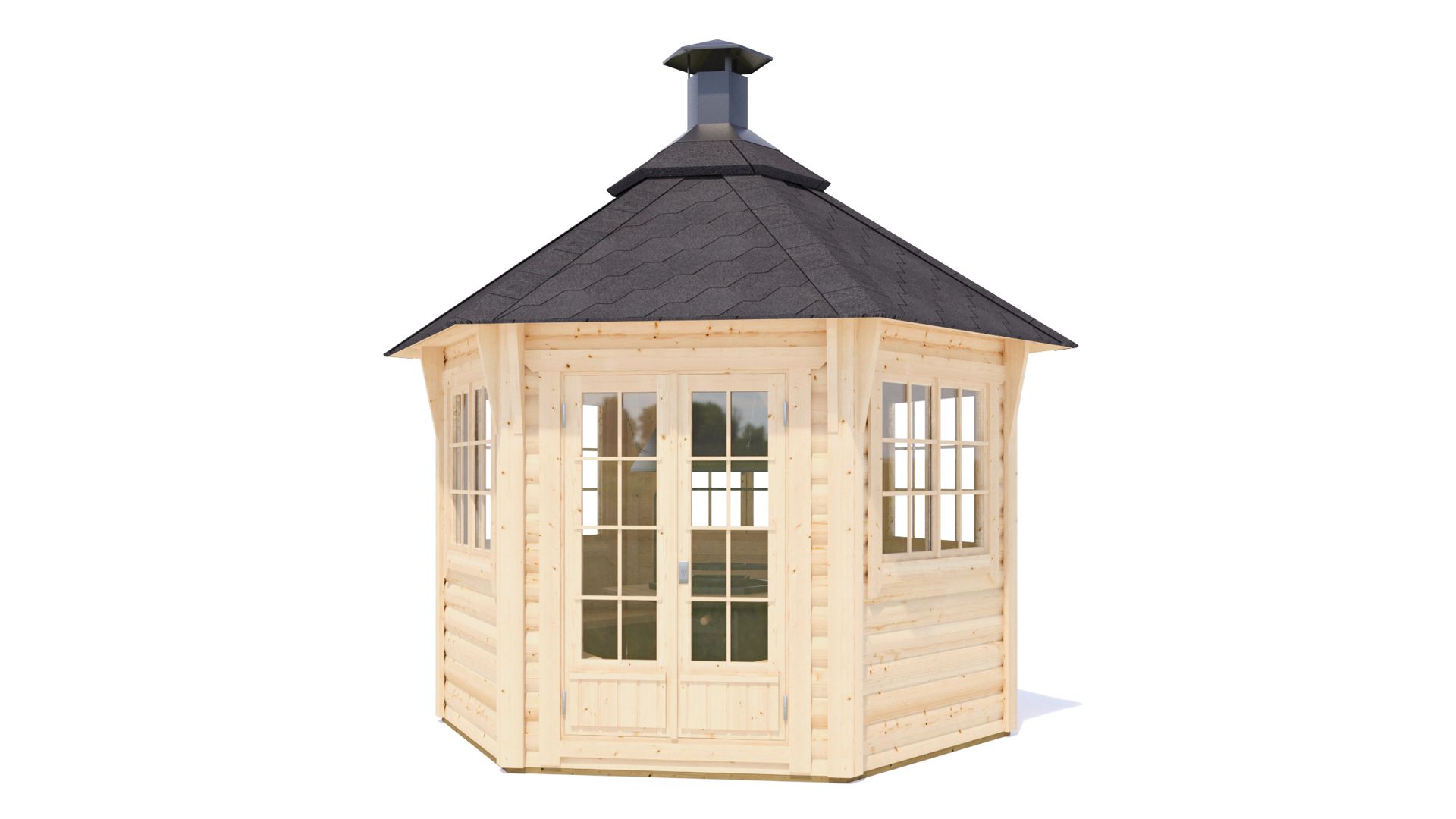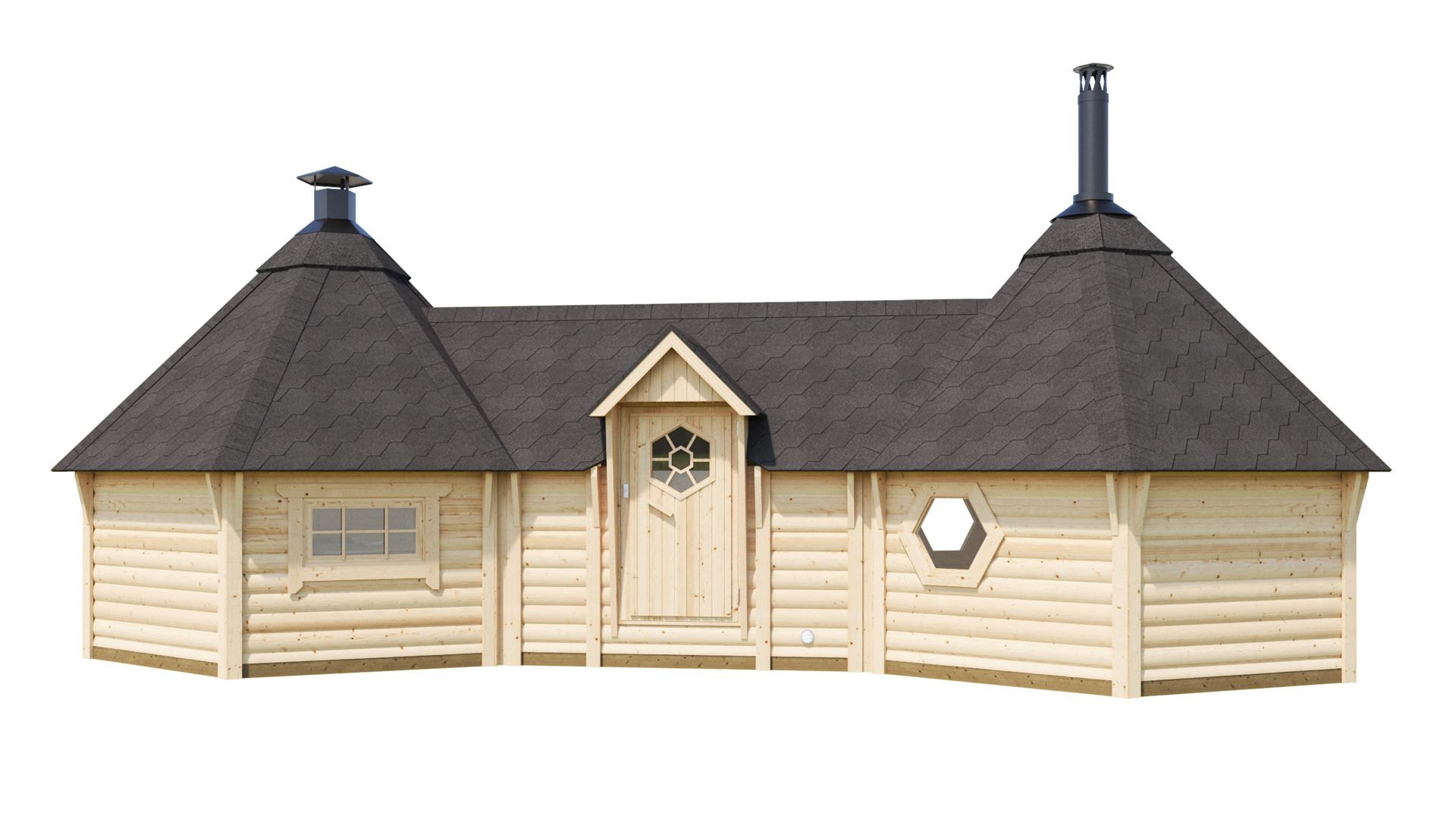 Vse lesene žar hiše 44 mm, vsebujejo standardni komplet: vrata, okna in opremo za