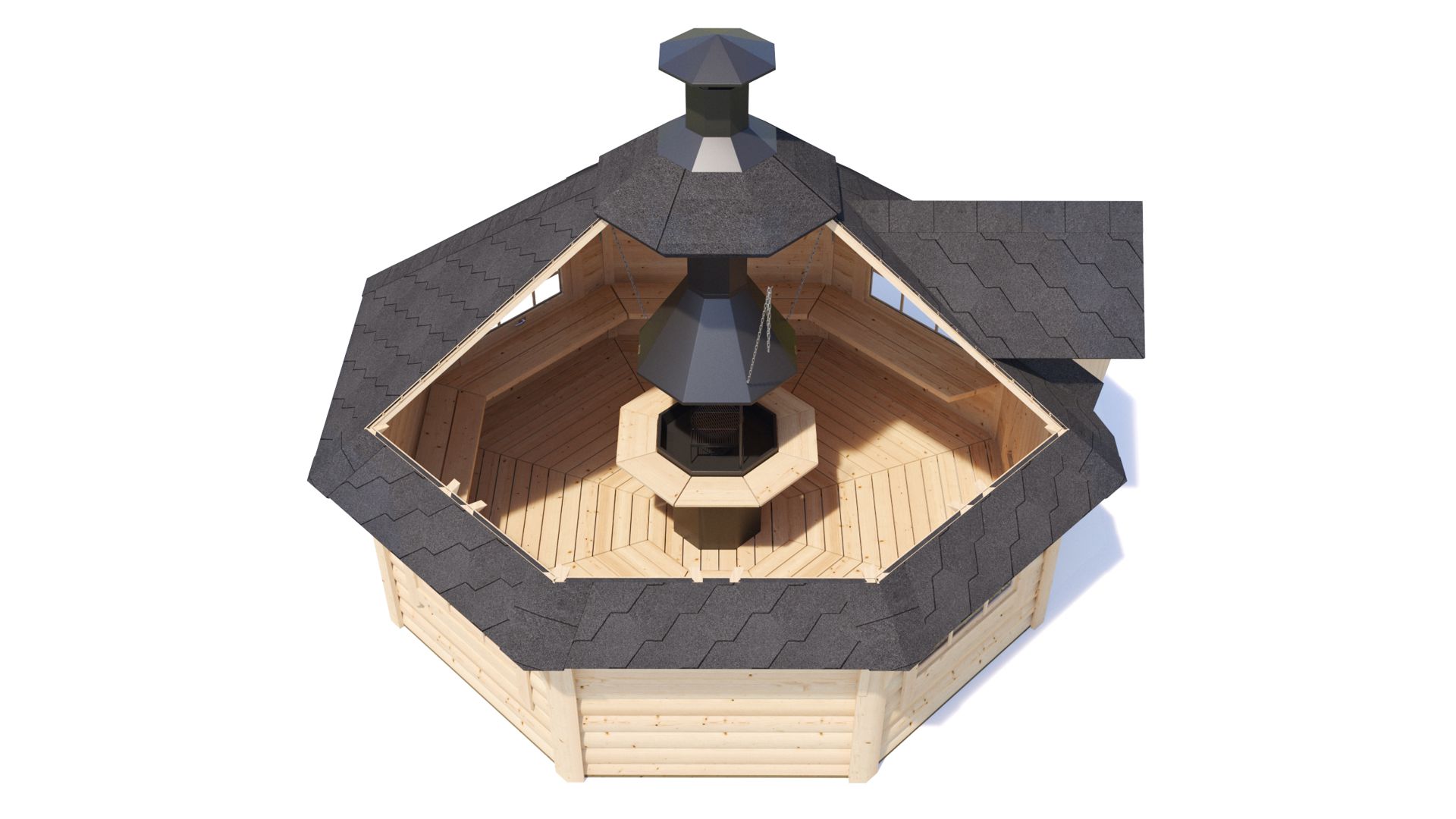 Komplet lesenih hišic za žar debeline 44 mm vsebuje: