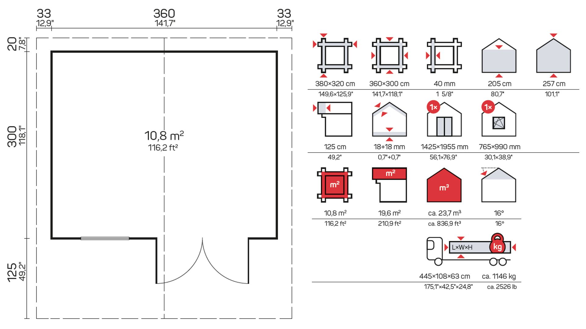 Vse lesene hišice 28 in 40 mm, otroške igralnice, nadstreški, poletne hišice in garaže vsebujejo standardni komplet: vrata, okna in pritrdilne elemente, ki omogočajo enostavno in hitro montažo hišic.