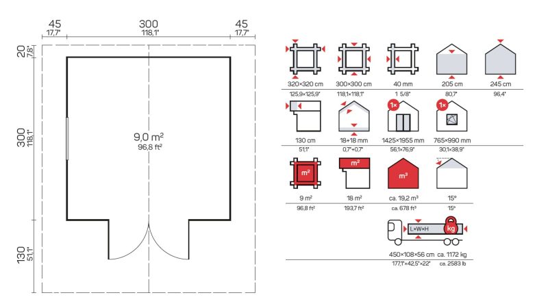 Vse lesene hišice 28 in 40 mm, otroške igralnice, nadstreški, poletne hišice in garaže vsebujejo standardni komplet: vrata, okna in pritrdilne elemente, ki omogočajo enostavno in hitro montažo hišic.