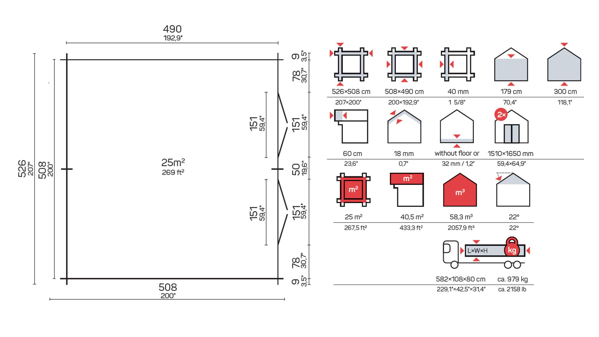Vse 40 mm lesene lope, otroške igralnice, nadstreški za avtomobile, vrtne hišice in garaže vsebujejo standardni komplet: vrata, leseni material in pritrdila, ki omogočajo enostavno in hitro montažo hišk.