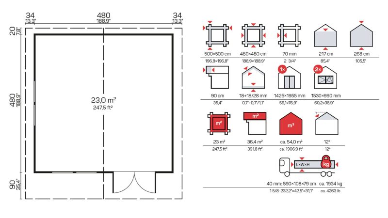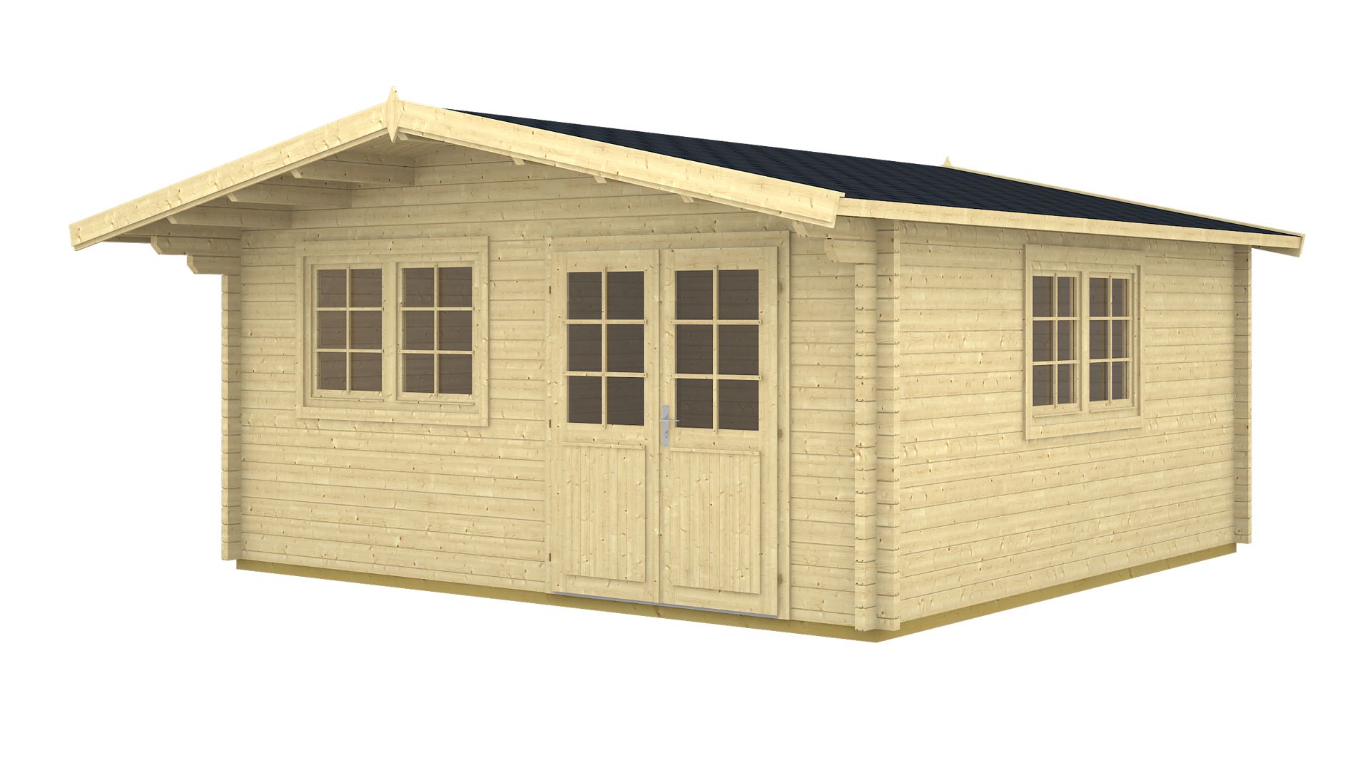 Vse 70 mm lesene hišice, otroške igralnice, nadstreški za avtomobile, poletne hišice in garaže vsebujejo standardni komplet: vrata, okna in pritrdilne elemente, ki omogočajo enostavno in hitro montažo hišic.