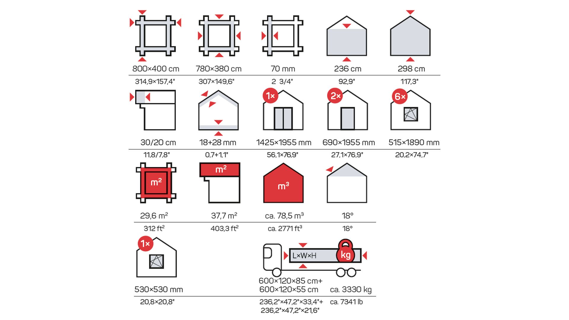 Vse 70 mm lesene hišice, otroške igralnice, nadstreški za avtomobile, poletne hišice in garaže vsebujejo standardni komplet: vrata, okna in pritrdilne elemente, ki omogočajo enostavno in hitro montažo hišic.