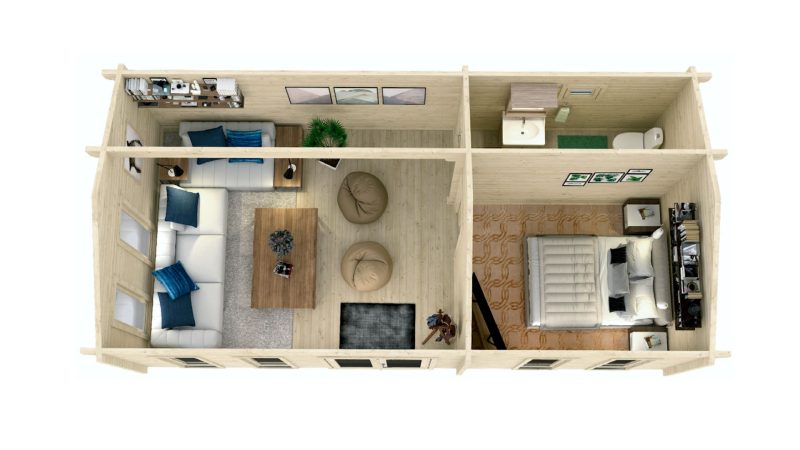 Lesena hiška Marida debeline 70 mm vsebuje:
