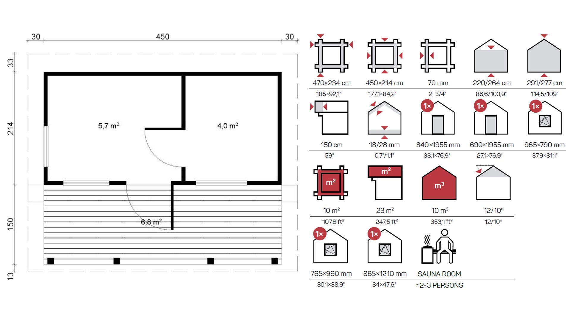 Komplet lesenih savn Marida debeline 70 mm vsebuje: