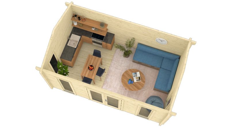 Lesena hiška Marida debeline 70 mm vsebuje: